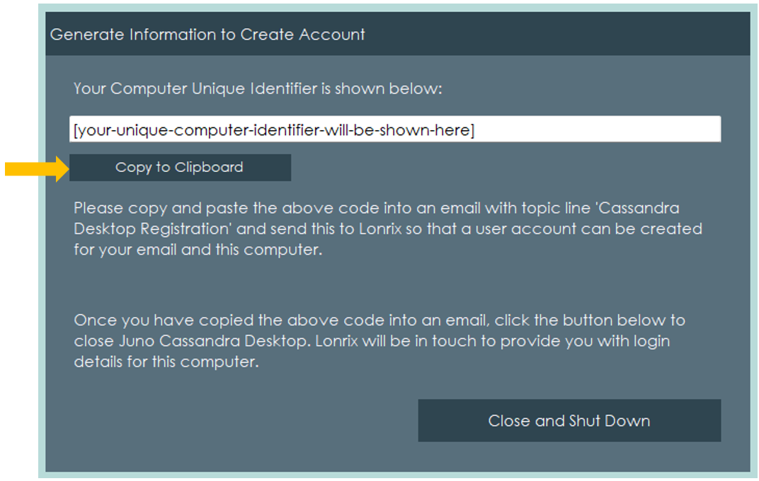 - Copy your unique computer identifier to the clipboard using the button as shown below: