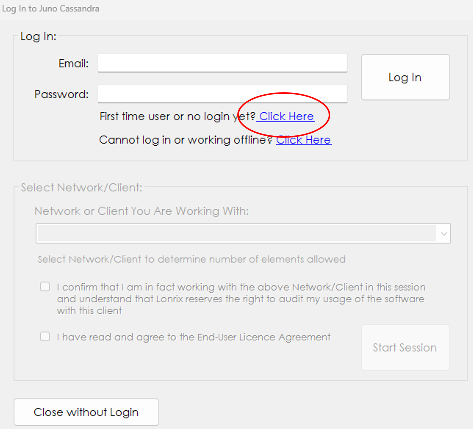 Run Juno Cassandra. When the login form is shown, enter your email and password and click on the Log In button.