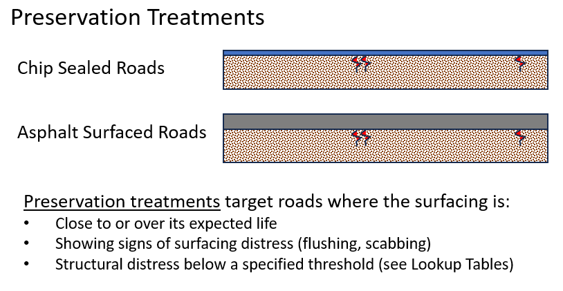 - Pavement distress is not sufficient to warrant a rehabilitation but too extensive to perform a Preservation/Resurfacing treatment.